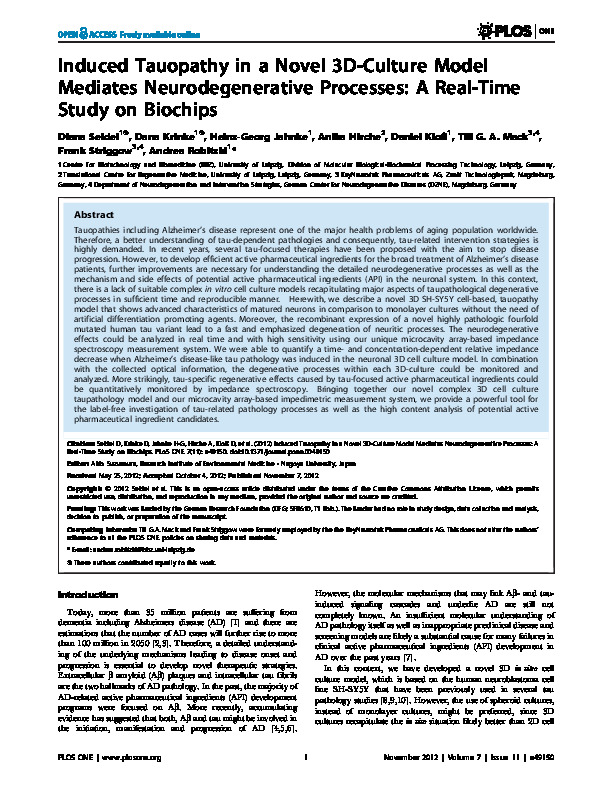 Induced tauopathy in a novel 3D-culture model mediates neurodegenerative processes: a real-time study on biochips. - DZNE-2020-03039